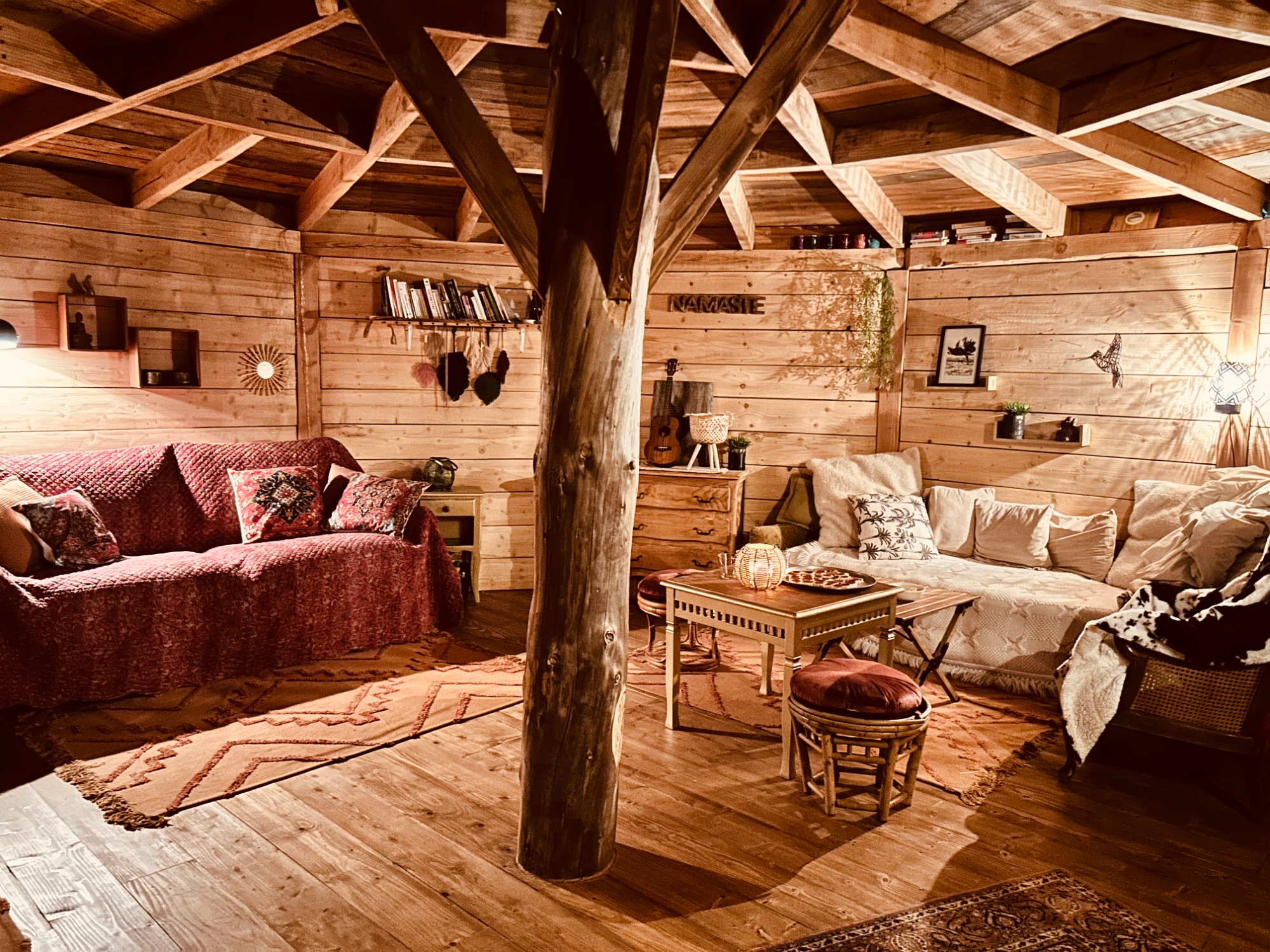 Une yourte en bois offrant un cadre chaleureux et propice à la réflexion,